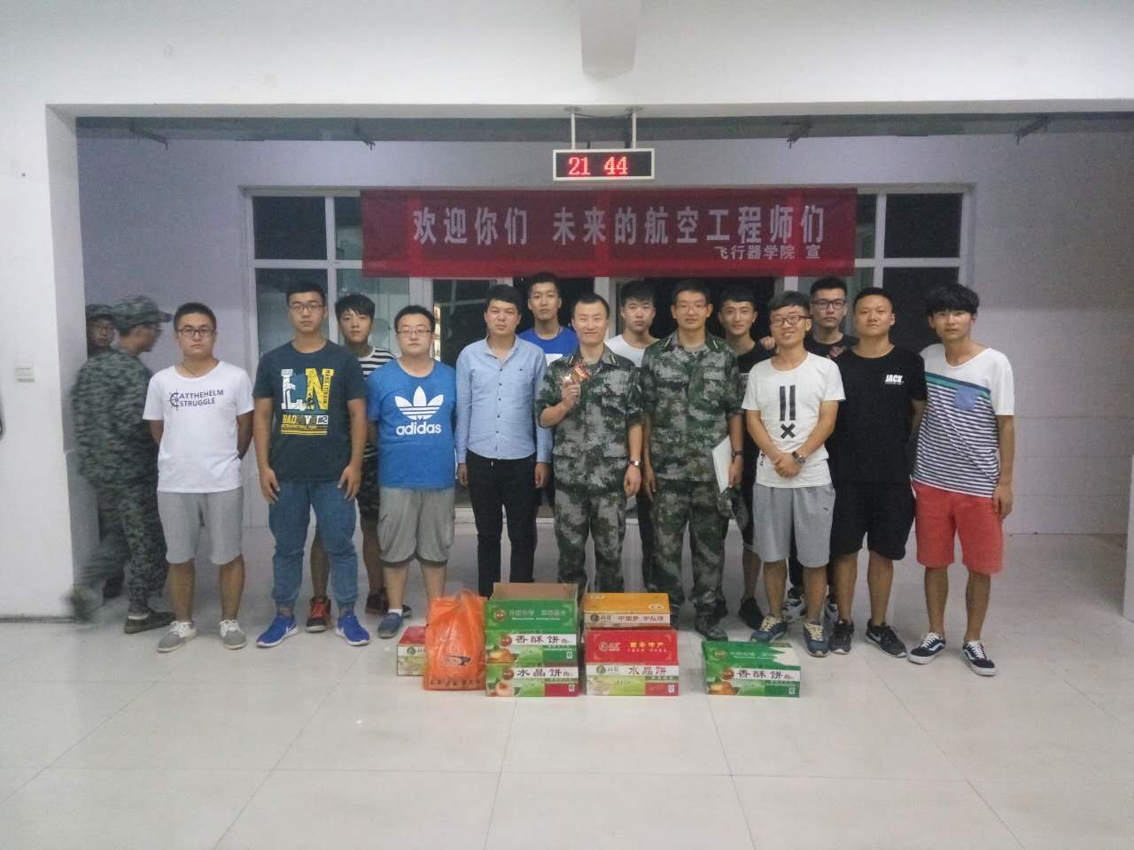 节日当晚,学生管理科科长杜长龙、团总支书记刘杰带领院学生会干部前往所有新生宿舍进行慰问并派发了中秋月饼,了解了学生两周来的生活、训练期间的困难及适应环境情况等,同时嘱咐学生刻苦训练,磨炼意志,搞好人际关系,尽快融入学校这个大家庭来。