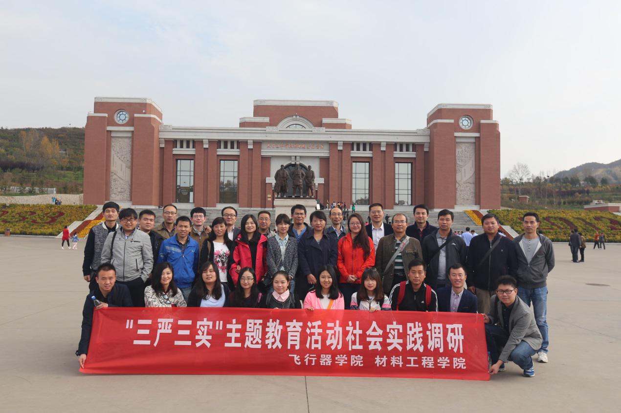 重走红军路,体验革命情。为了更好的开展“三严三实”专题教育活动,进一步加强党员干部革命传统和理想信念教育,牢固树立群众观点,2015年10月18日,飞行器学院和材料工程学院共同组织两院教师党员赴铜川照金革命根据地参观学习,观瞻陕甘边革命根据地照金纪念馆和薛家寨革命旧址,缅怀革命先烈,传承革命精神,接受革命传统教育。我院党总支书记郝红武、副书记李庆、材料工程学院党总支书记谢辉、副书记王永峰及两院教师党员等34人参加了本次活动。