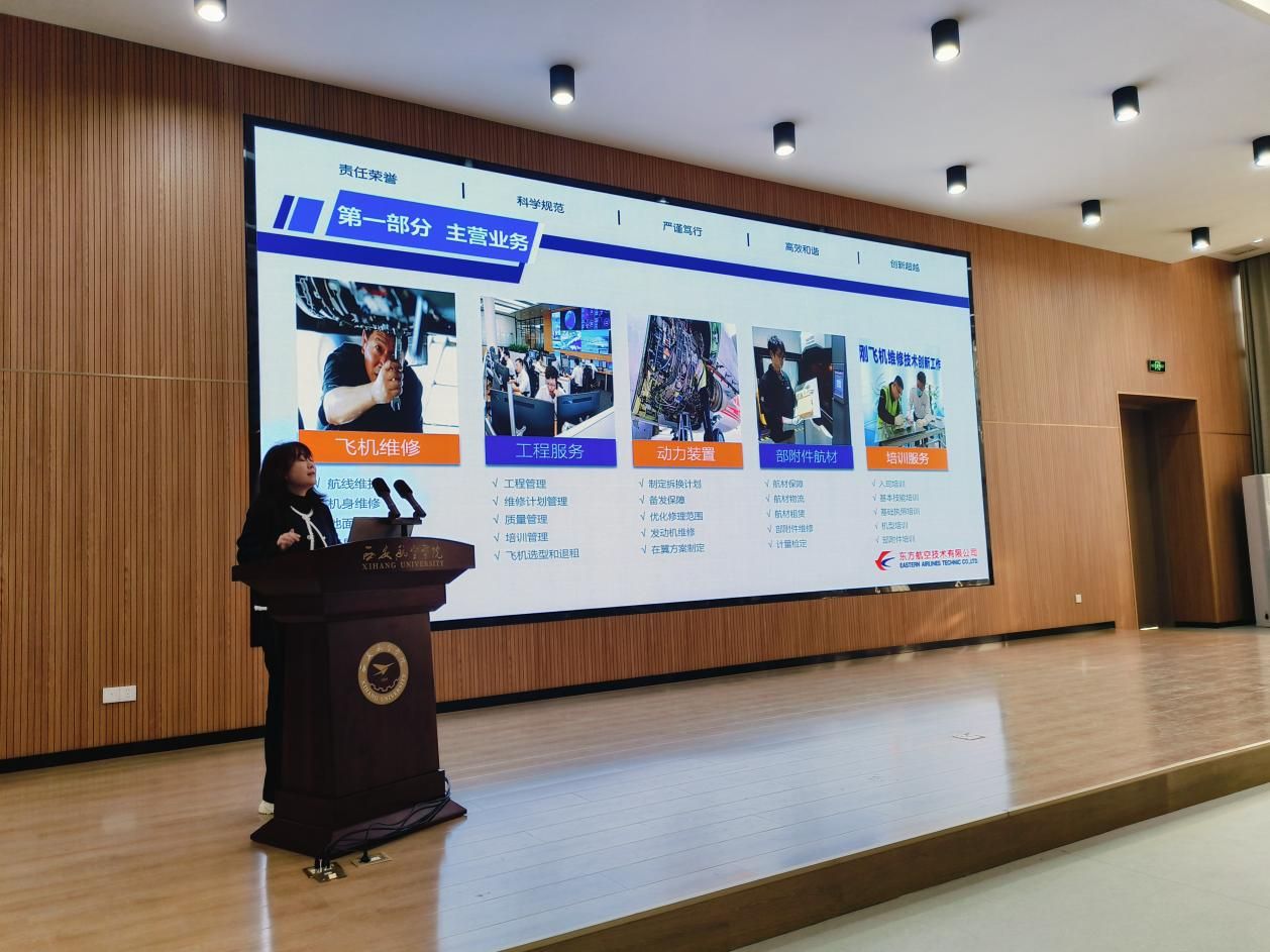 作为西北地区航空维修领域的领军企业,东航技术西安分公司是西安咸阳机场最大驻场单位,也是具备 a320 系列飞机全深度维修能力的核心机构,同时承担着 c919 国产大飞机 “沪陕快线” 的运行保障重任。宣讲会上,公司人力资源部负责人通过ppt 演示,全面介绍了公司发展历程、核心业务布局、乐发app旧版下载的文化及人才培养体系。重点解读了本次招聘的飞机维修工程师岗位需求,详细说明任职要求、薪酬福利及职业晋升路径,并特别强调公司为应届生打造的 “定制化培训计划”,涵盖 ccar-147 部机型理论培训、模拟机实操训练等专业赋能环节,让在场学生对职业发展前景有了清晰认知。